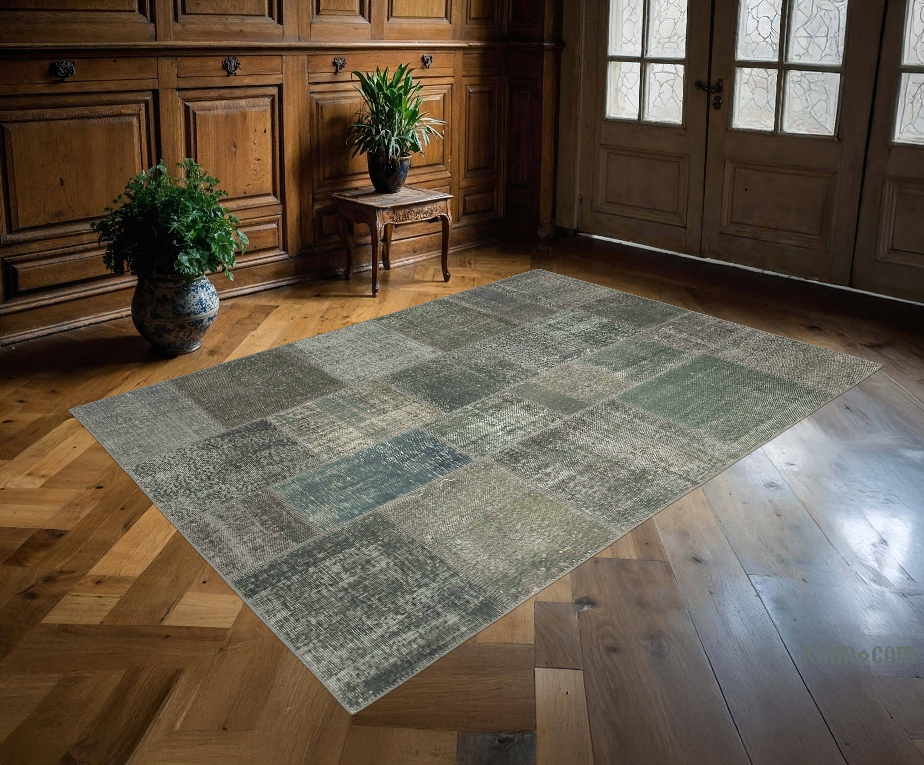Patchwork Hand-Knotted Turkish Rug - 5' 9" x 7' 11" (69" x 95")