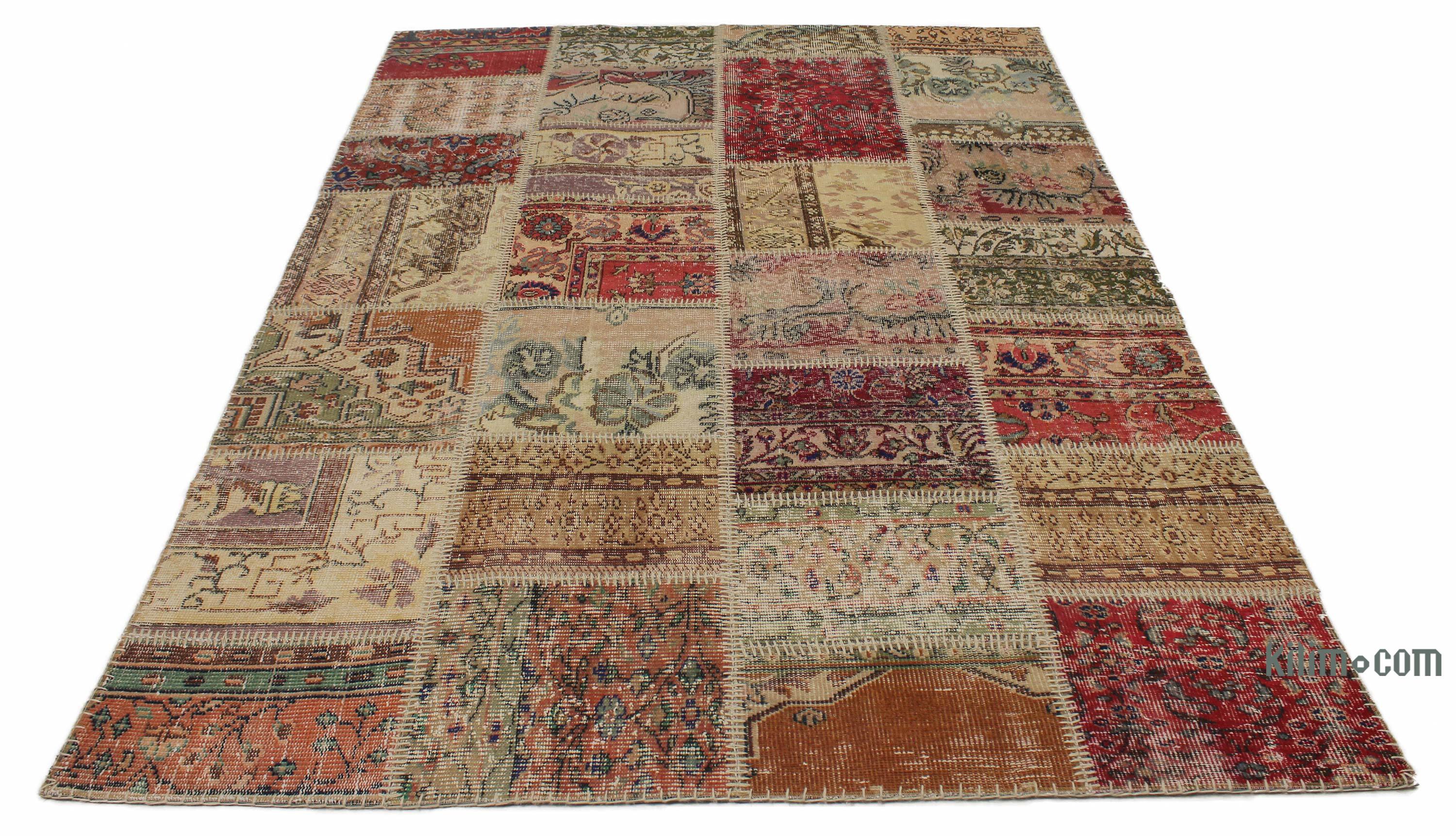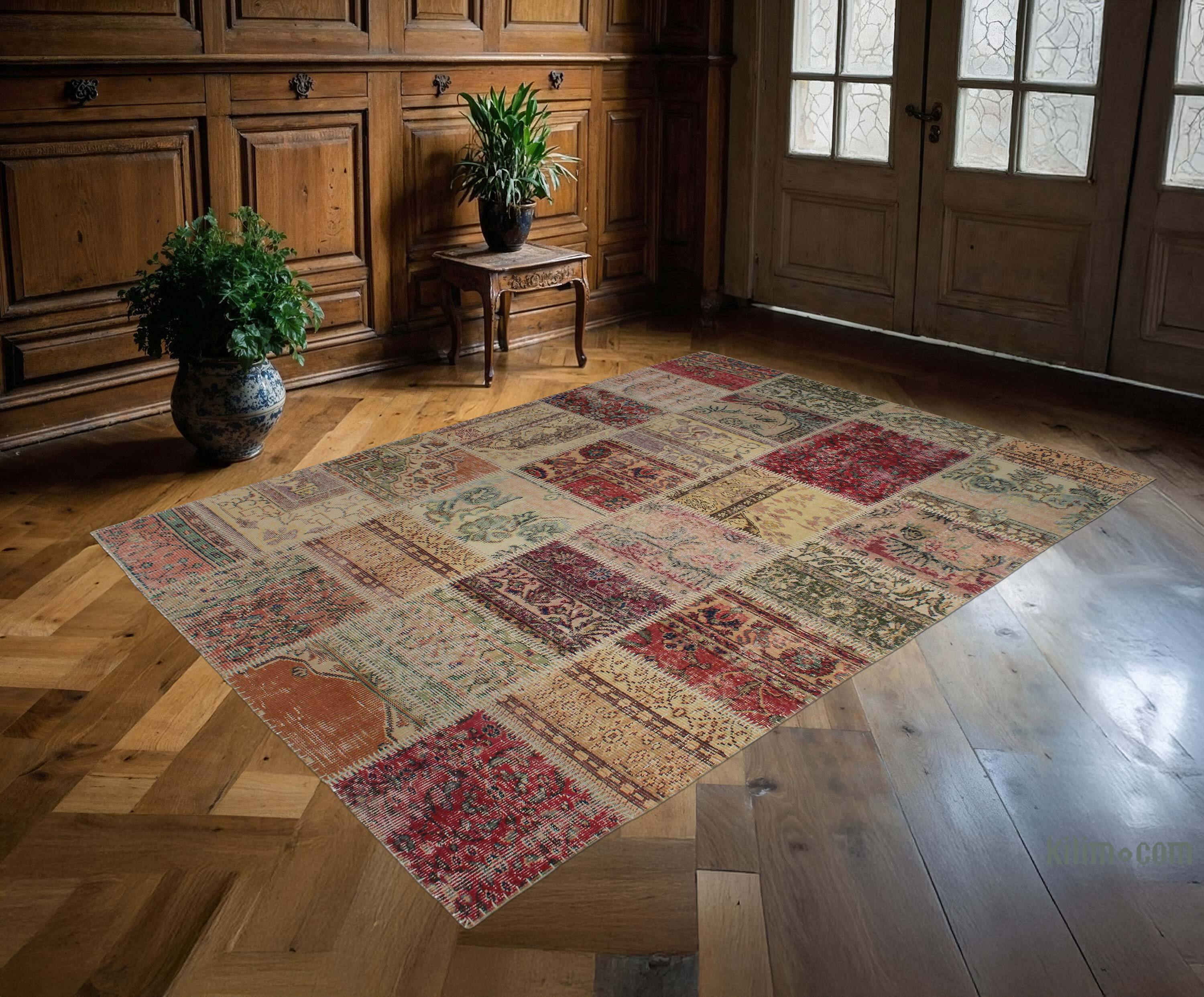 Patchwork Hand-Knotted Turkish Rug - 6' 3" x 7' 11" (75" x 95")