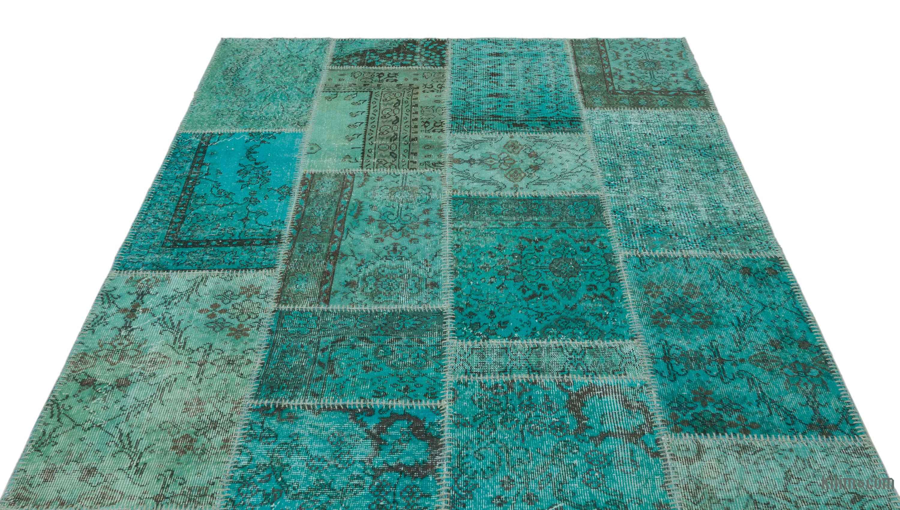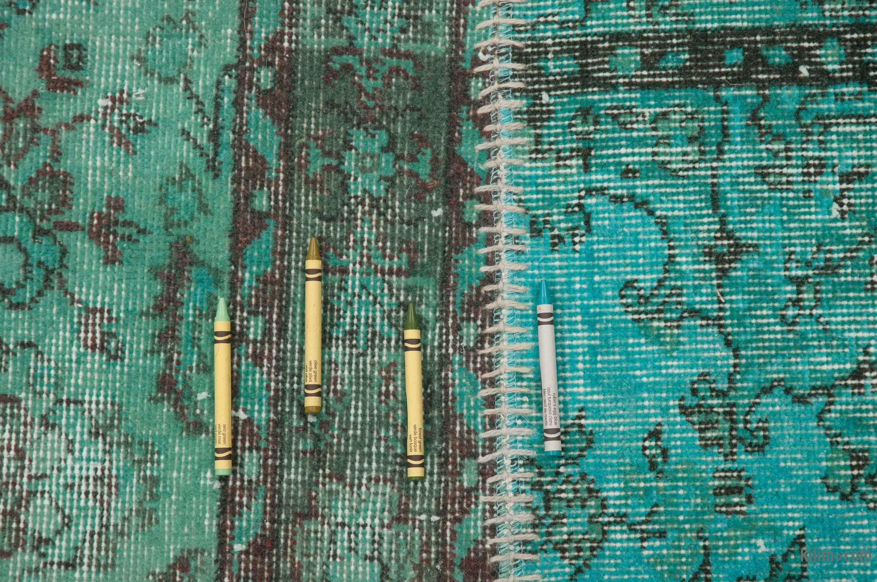 Nuestras Alfombras de Retazos Vintage Sobreteñidas combinan culturas, tradiciones e historia, creando alfombras maravillosamente únicas. Seleccionamos alfombras turcas vintage anudadas a mano, tejidas en los años 60 y 70 para crear nuestra colección de Alfombras de Retazos sobreteñidas. Lavamos los colores, recortamos las pilas, pero cuidamos de mantener los patrones originales aún vivos. Luego los sobrepasamos con un nuevo color de elección, los cortamos en pedazos más pequeños y cosemos a mano los fragmentos con un hilo resistente. Respaldamos las Alfombras de Retazos con bucarán y una tela de algodón que fortalece la alfombra. La reorganización de los fragmentos transforma la antigua fabricación de alfombras en una obra de arte única adecuada para la configuración contemporánea en el hogar o en oficinas. Esta particular Alfombra de Retazos mide 162 cm x 232 cm. Eche un vistazo a nuestro artículo Obtenga la Apariencia "Vivida" para obtener más información sobre las alfombras vintage sobreteñidas y de retazos.