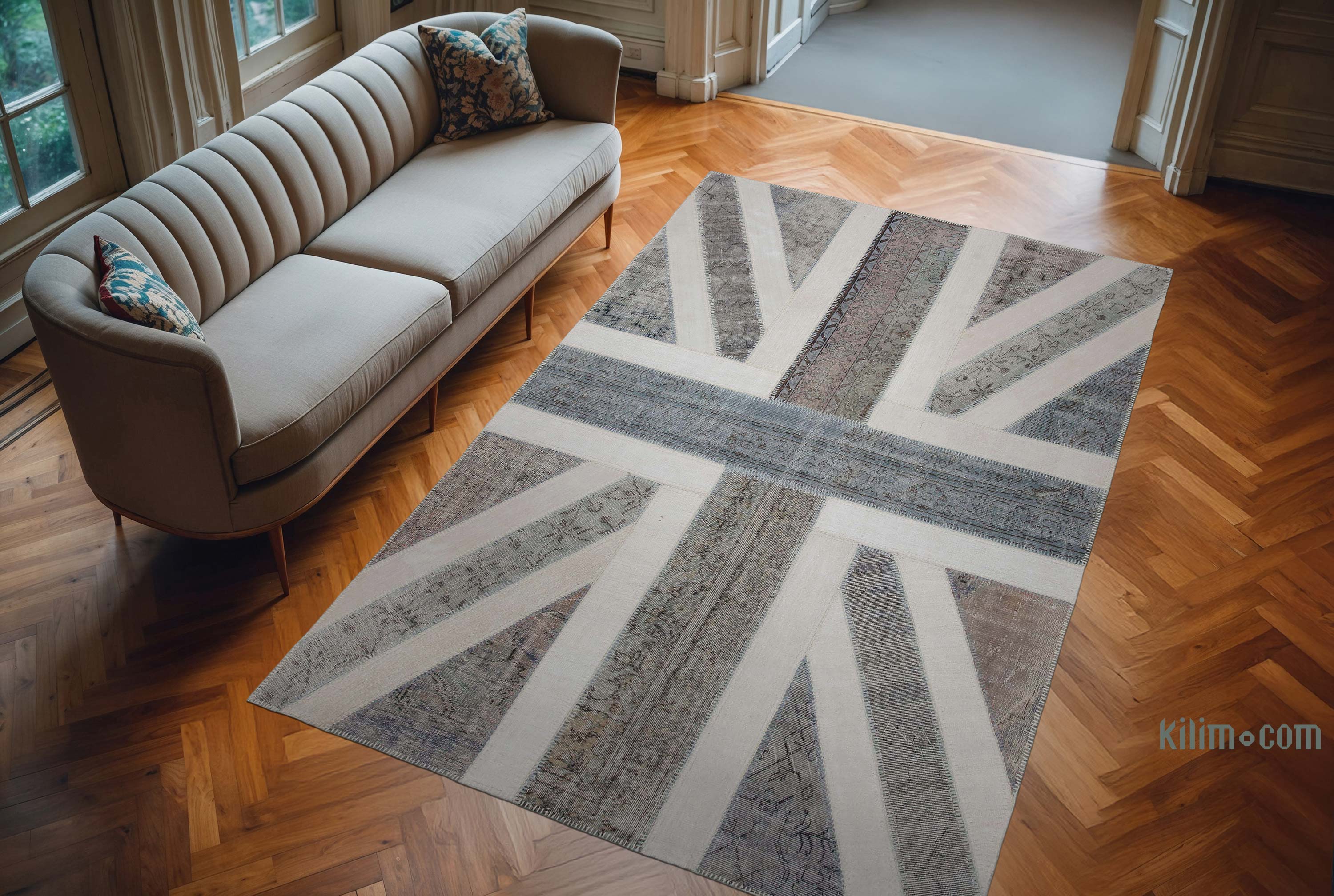 Gris Patchwork Británica Flag Rug - 200 cm x 302 cm
