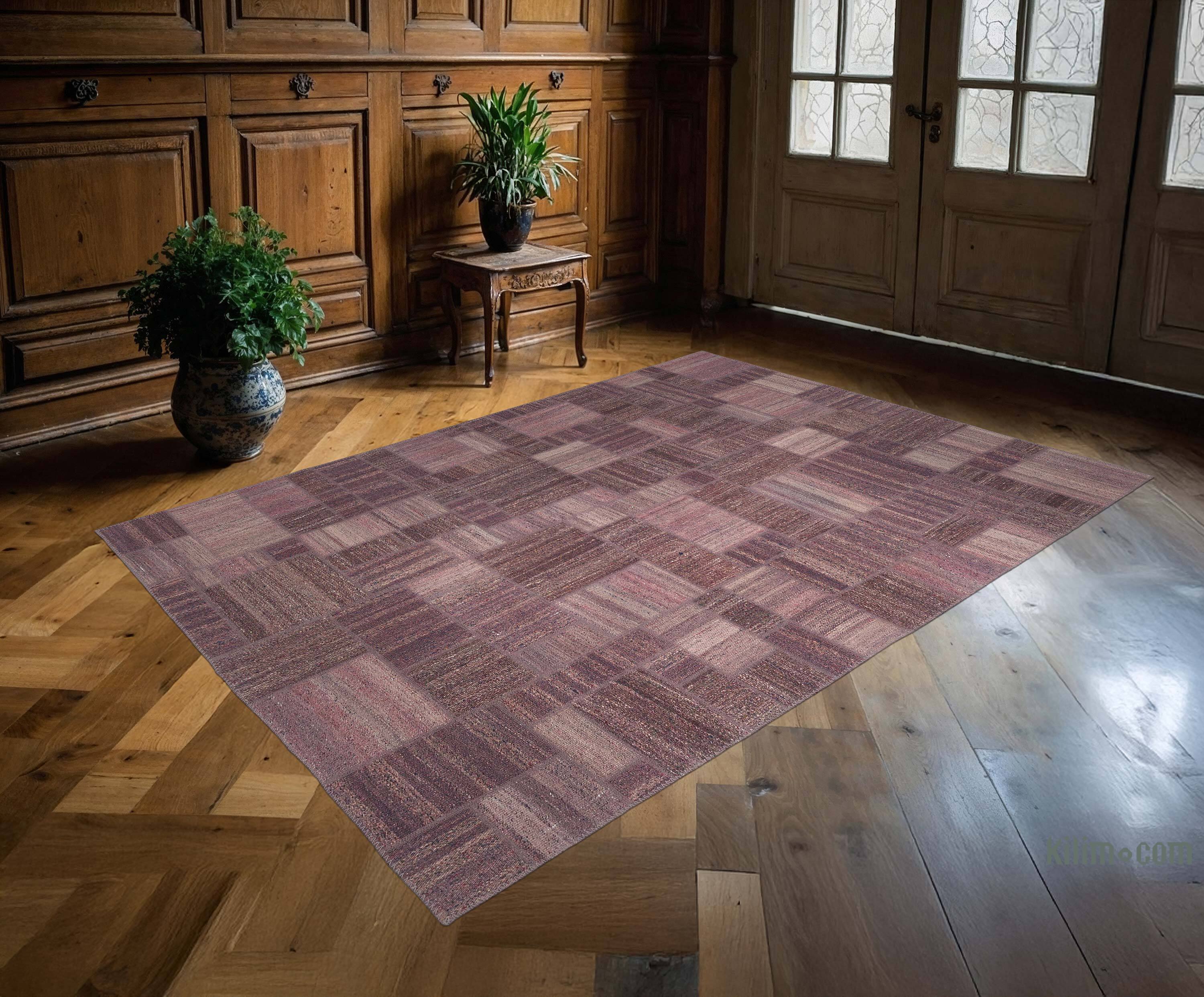 167 cm x 237 cm kilim Alfombras de Retazos creadas a partir de fragmentos kilim vintage. La reorganización de los fragmentos transforma la antigua fabricación de alfombras en una obra de arte única adecuada para la decoración contemporánea en el hogar o en oficinas. Ecológicas y creativas, cada Alfombra Kilim de Retazos es única en su color y diseño. Un mantel de algodón y un bucarán sirve para fortalecer y reforzar la alfombra. Todas nuestras alfombras vintage son limpiadas profesionalmente y sin olores.