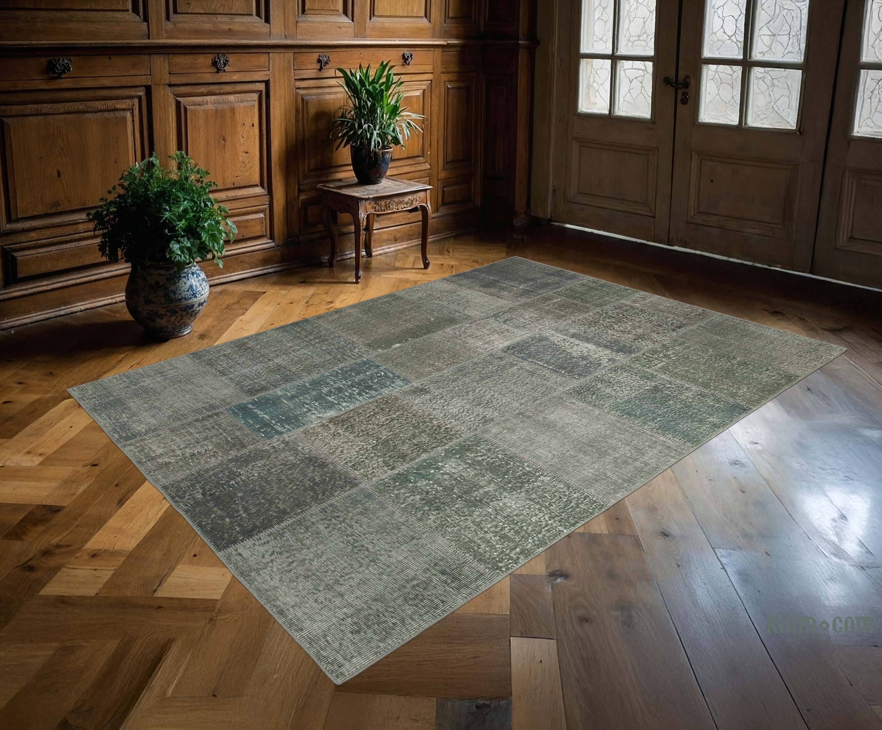 Nuestras Alfombras de Retazos Vintage Sobreteñidas combinan culturas, tradiciones e historia, creando alfombras maravillosamente únicas. Seleccionamos alfombras turcas vintage anudadas a mano, tejidas en los años 60 y 70 para crear nuestra colección de Alfombras de Retazos sobreteñidas. Lavamos los colores, recortamos las pilas, pero cuidamos de mantener los patrones originales aún vivos. Luego los sobrepasamos con un nuevo color de elección, los cortamos en pedazos más pequeños y cosemos a mano los fragmentos con un hilo resistente. Respaldamos las Alfombras de Retazos con bucarán y una tela de algodón que fortalece la alfombra. La reorganización de los fragmentos transforma la antigua fabricación de alfombras en una obra de arte única adecuada para la configuración contemporánea en el hogar o en oficinas. Esta particular Alfombra de Retazos mide 171 cm x 239 cm. Eche un vistazo a nuestro artículo Obtenga la Apariencia "Vivida" para obtener más información sobre las alfombras vintage sobreteñidas y de retazos.