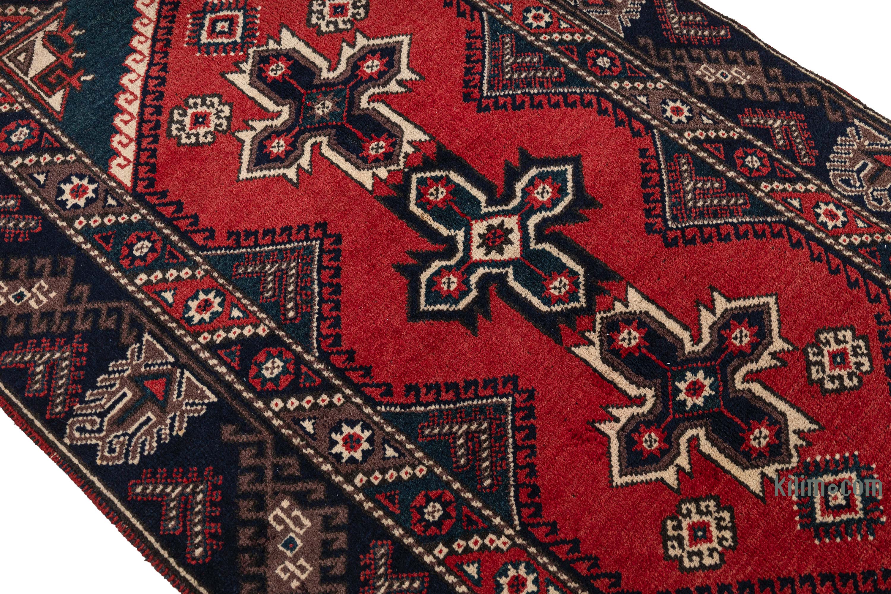 Rojo, Azul Oscuro Nueva Alfombra Turca De Pila - 164 cm x 193 cm