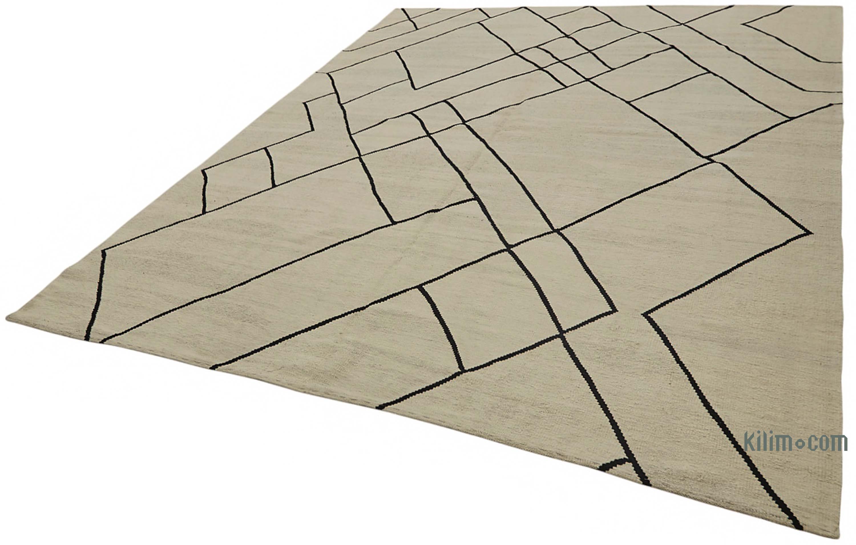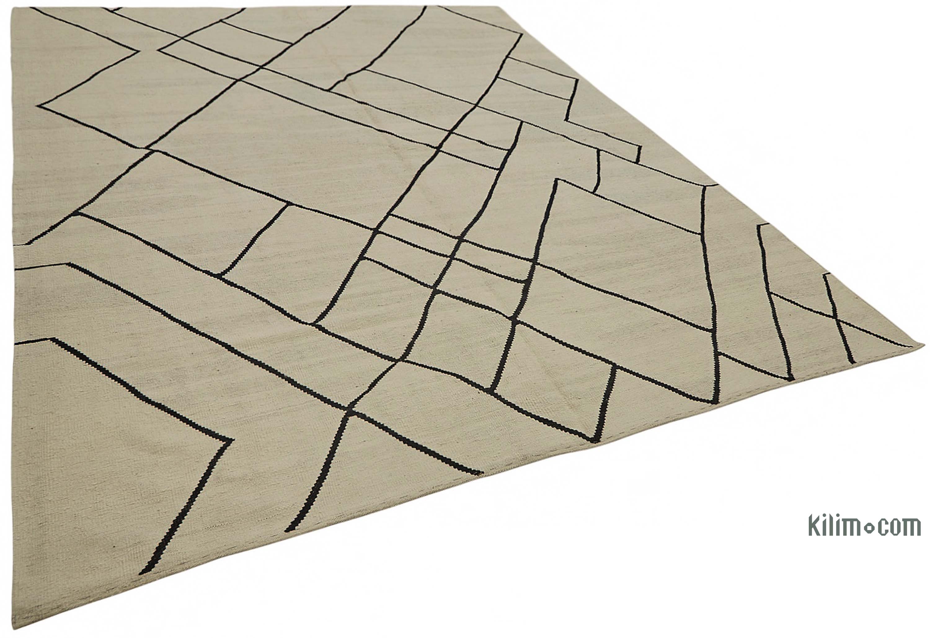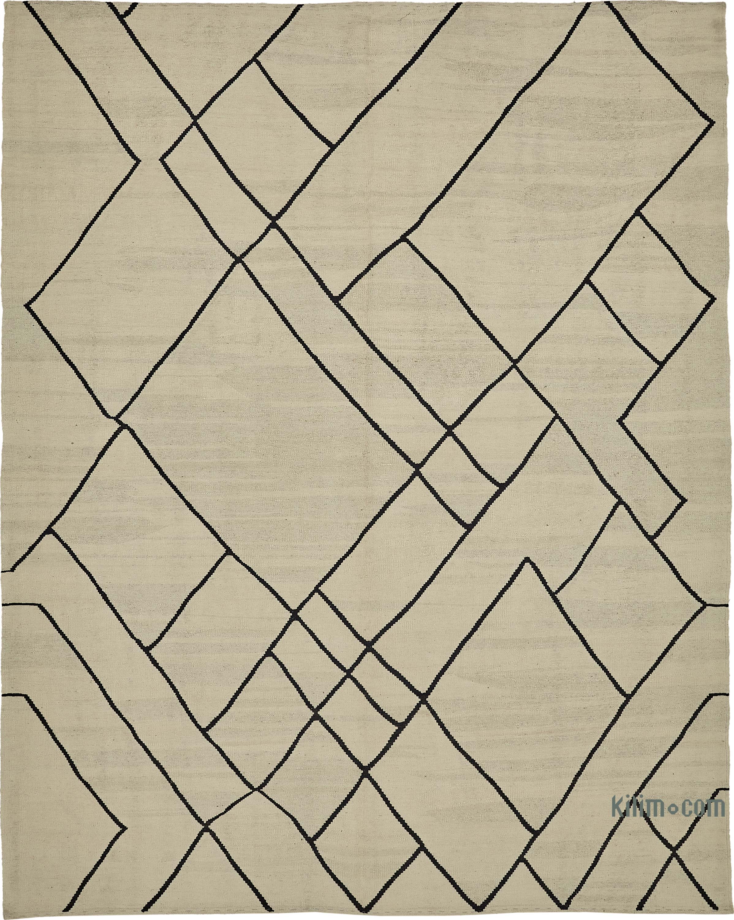 Beige, Negro Nueva Alfombra Turca Kilim