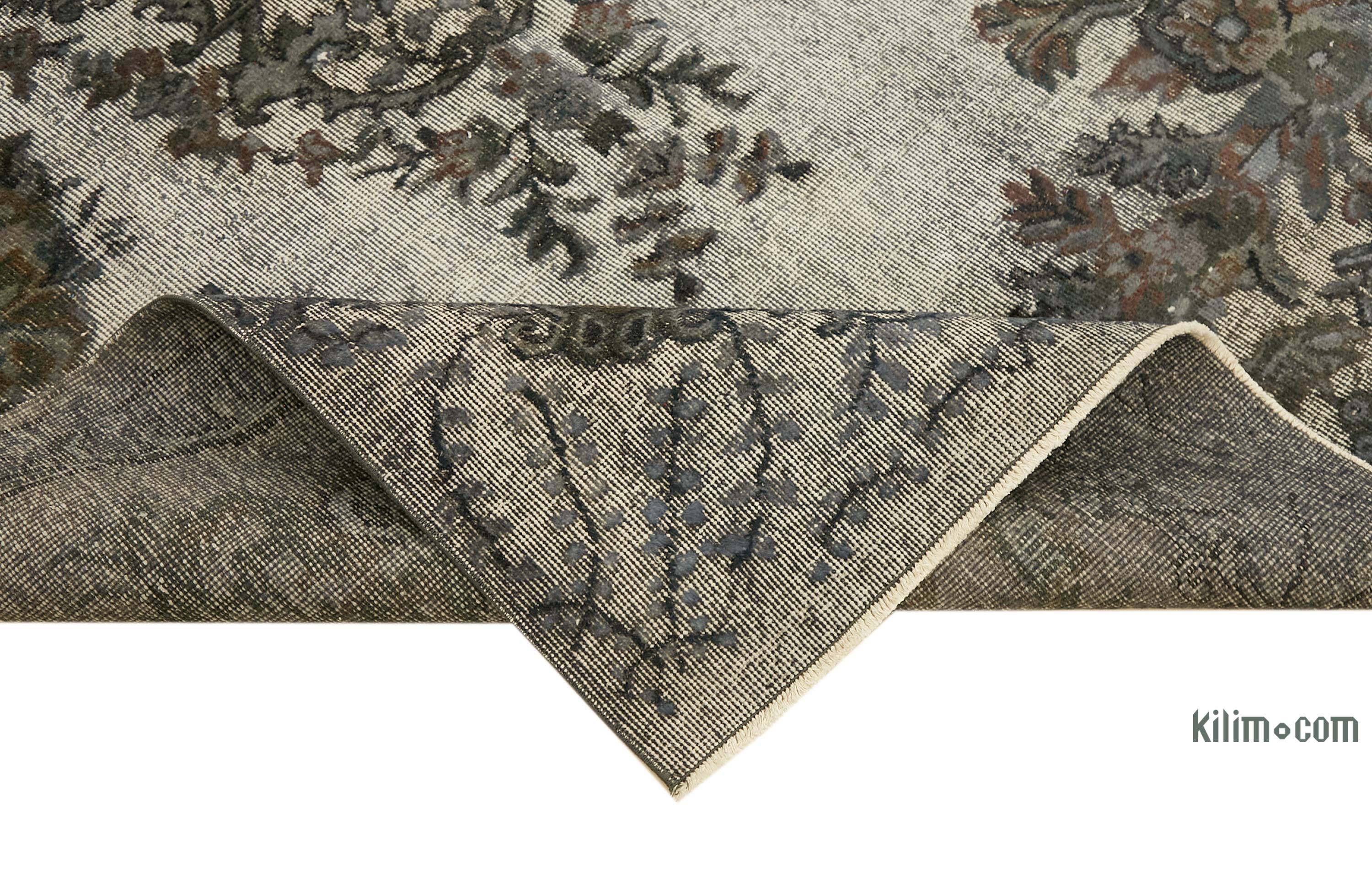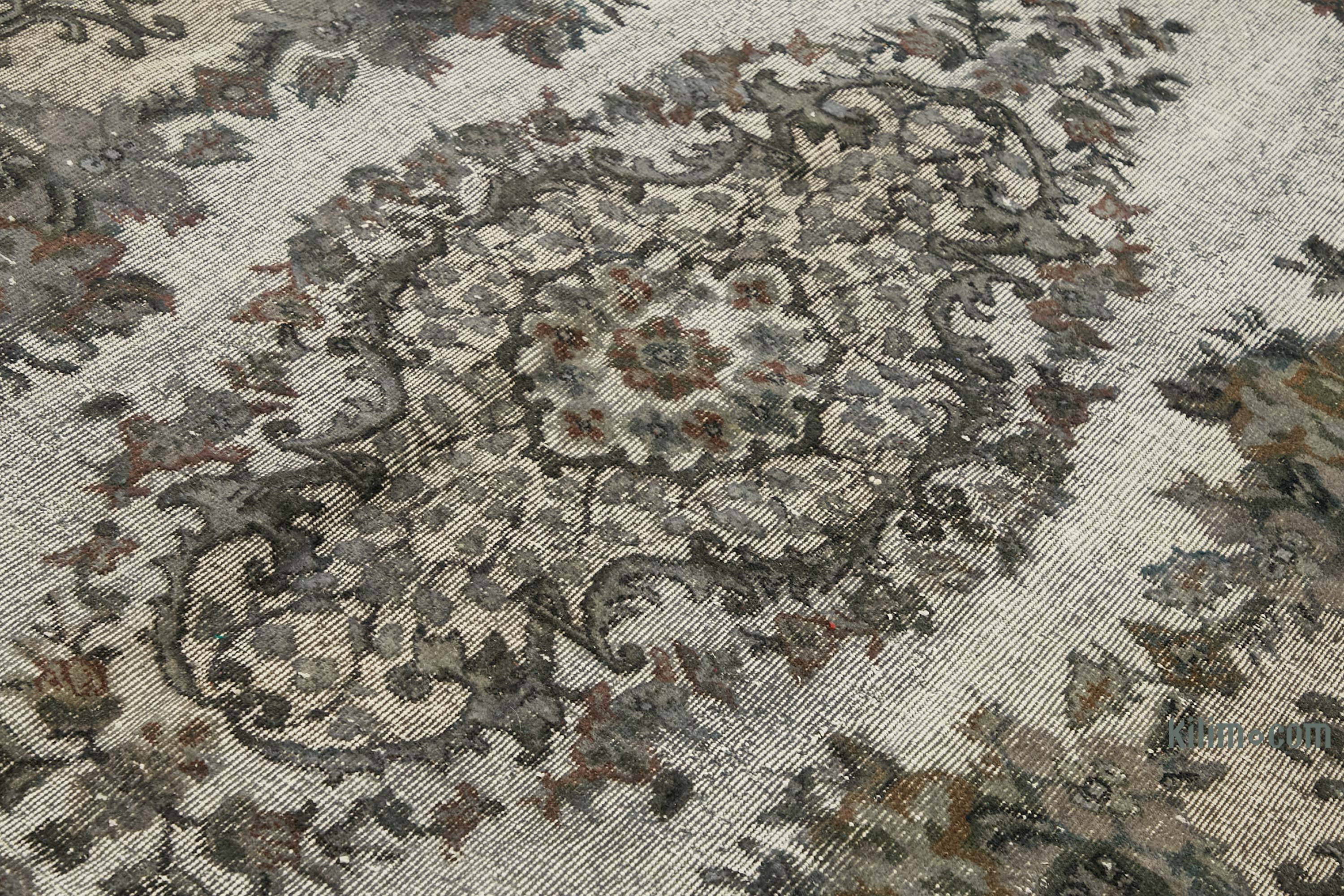 Çağdaş bir görünüm sunan bu el oyma, boyalı halı, 20. yüzyılın ikinci yarısında dokunmuş, orijinal el dokuması bir vintage Türk halısının yeniden hayat bulmuş halidir.